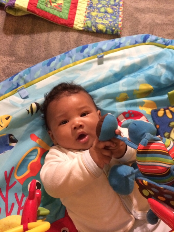Jackson is 3.5 months old and we love this stage! He is becoming such an active little boy. Every day we see his motor skills develop, especially in his hands.
