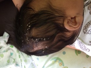 I’m so bad. I admit it. I chip away (gently) at Jackson’s cradle cap while he’s feeding. It’s therapeutic, it makes his head look better after all the dead skin is brushed away and it doesn’t hurt him. Is that so wrong? I know, it’s yucky.