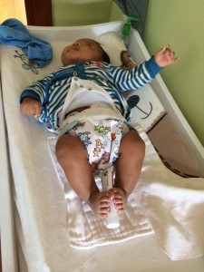 Developmentally, kids can grab with their feet before they can grab with their hands. Jackson often holds onto diapers coming off his bum or towels being pulled away after a shower. I put this tube between his feet and sure enough he held on tight!