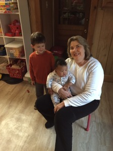 Jackson’s 4 year old daycare buddy Nicholas apparently talks about Jackson all the time! Nicholas’s mom says that he has so many stories about Jackson. And when Joe dropped Jackson off today Nicholas walked in and went straight to Jackson. Awww!