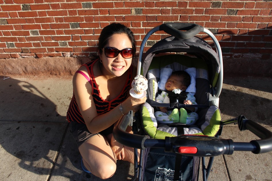He also went for his first walk to… the Needham Junction for ice cream! I had Coconut Almond Bar; I am training his palate to have the same favorite flavor as his mom and dad 🙂
