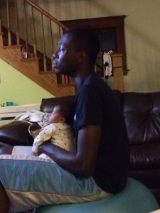 July 27- Jackson is 3 weeks old! He’s looking and acting juuuust like his ol’ man. This is what late night TV “watching” is like chez nous.