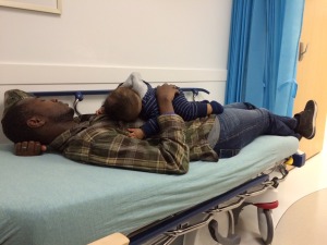 Waiting even longer in exam room. Jackson stayed awake for 2.5 hrs and fell asleep right before the Nurse Practitioner came in.