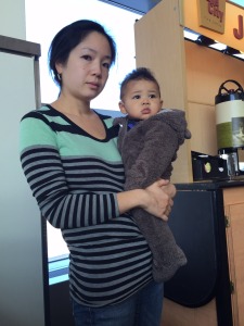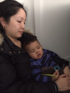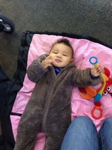 First, we got stuck on the Mass Pike behind 4 accidents, which meant that we missed our flight. So we rescheduled our flight, which, unfortunately had a connection. Both flights were delayed. To top it off, on the second leg we sat on the runway for 30 min to find that we were only #26 to take off at that point! Also on that flight, Jackson had a blow out and screamed when he had to get changed on the table that was – no joke- half the size of his body. Oh and Delta lost one of our suitcases, which had Jackson’s diaper stuff and my pumping stuff. We’ve had to make about 8 calls to track it down– and we finally got it 28 hrs later.
